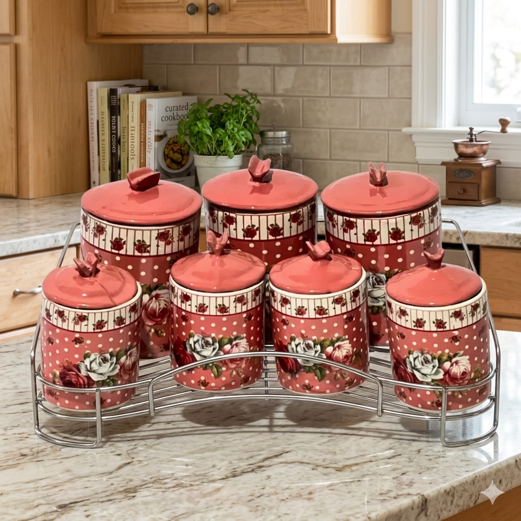 طقم توابل دوار وردة بتصميم أنيق وفاخر، يضيف لمسة جمالية للمطبخ.يتكون من مجموعة من العلب لتخزين التوابل وتنظيمها بشكل مريح.يتميز بسهولة الاستخدام والدوران لتوفير الوصول السريع للتوابل.مثالي للمطابخ الحديثة والمطابخ الصغيرة. يمنحك تنظيمًا مريحًا وجمالًا في نفس الوقت.