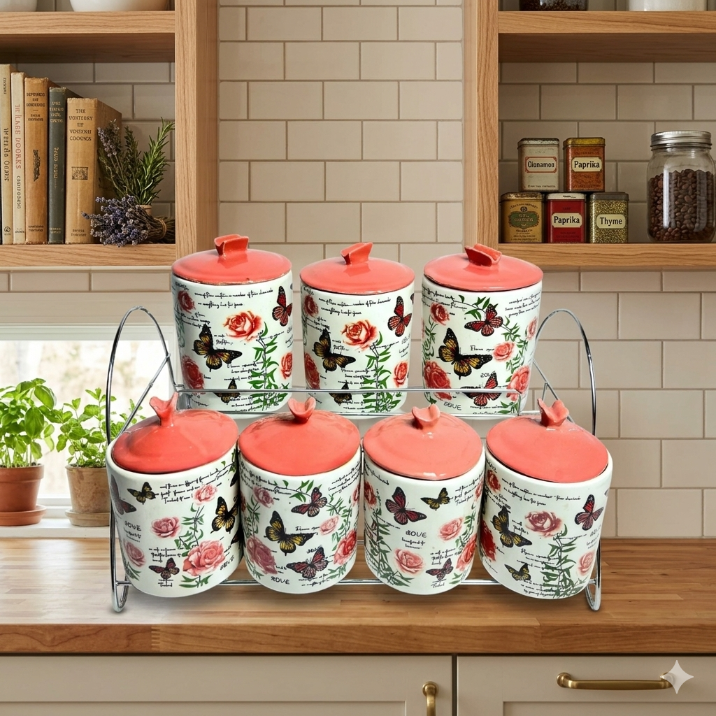 طقم توابل بورسلين فاخر مكون من 15 قطعةطقم توابل أنيق مكون من 15 قطعة، يشمل 3 عبوات كبيرة و4 عبوات صغيرة، مصنوع من البورسلين الفاخر لضمان الجودة والمتانة. يتميز بأغطية مصممة على شكل فراشة بألوان رائعة، مما يضفي لمسة من الأناقة والفخامة على مطبخكِ. يأتي الطقم مع حامل عملي وأنيق يساعدكِ على تنظيم التوابل بسهولة، مع الحفاظ عليها مرتبة وآمنة. تصميمه العصري يجمع بين الجمال والوظيفية، مما يجعله مثاليًا للاستخدام اليومي ولإضفاء لمسة راقية على مطبخكِ.