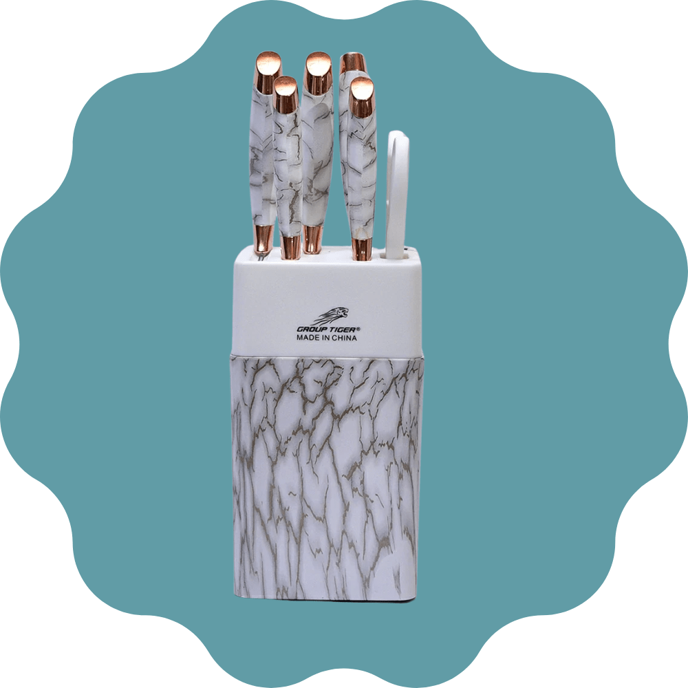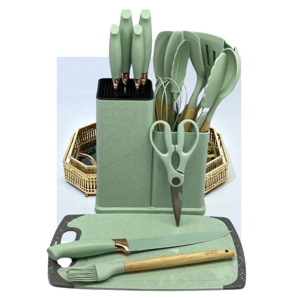 طقم توزيع مميز يشمل كبشة، مغرفة، ملعقة كبيرة، ومقصوصة، بالإضافة إلى طقم سكاكين متنوع الأشكال والاستخدامات و كمان معاه الاورمة، عشان يلبي كل احتياجاتك في المطبخ! كل حاجة في الطقم ده مصممة لتكون عملية وجميلة في نفس الوقت. الحامل المبتكر بيجمع الطقمين مع بعض، ليخلق لوحة فنية متكاملة بتزيد من جمال مطبخك. سواء كنتِ هتقدمي الأكل أو تحضريه، الطقم ده هيكون إضافة رائعة وسهلة الاستخدام لكل مناسبة. خلي مطبخك مميز مع الطقم الفخم ده!ماده التصنيع-استنلس