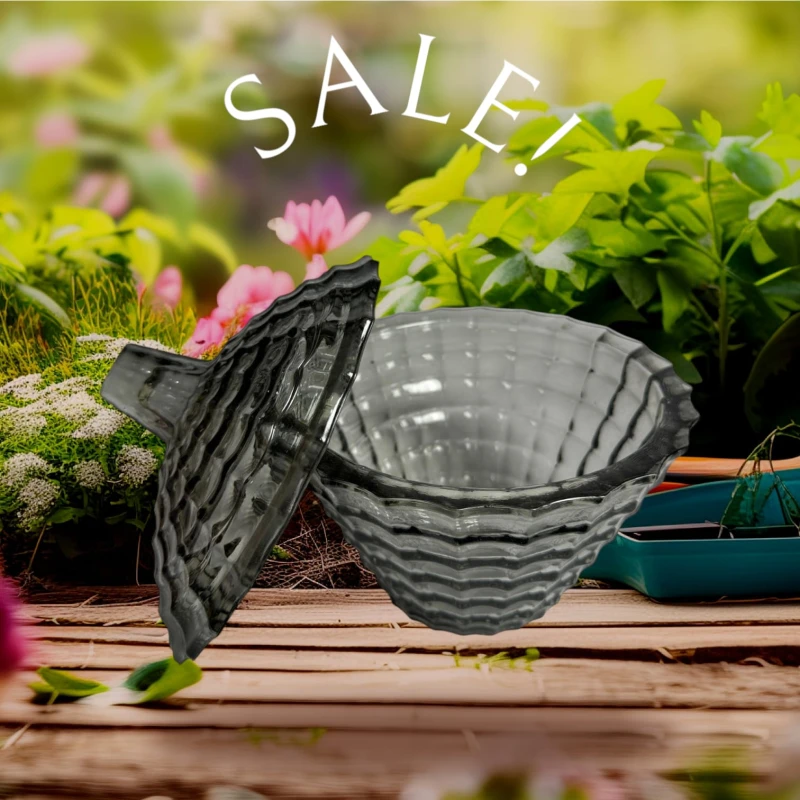 بنبونيرة زجاجية أنيقة – لمسة فاخرة لمائدتكبنبونيرة زجاجية بغطاء بتصميم مربعات مميز، تتميز بلون عسلي راقٍ يضفي لمسة من الفخامة والأناقة.