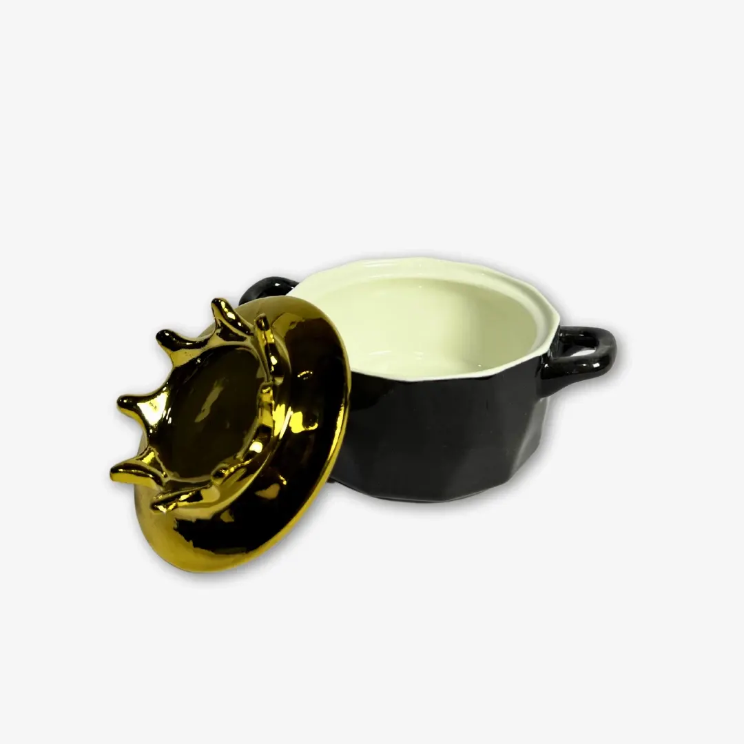 تأتي البولة مزودة بغطاء مدهب بتصميم تاج مميز، ليمنحها مظهرًا ملكيًا يجعلها قطعة ديكور فنية بجانب استخدامها العملي.