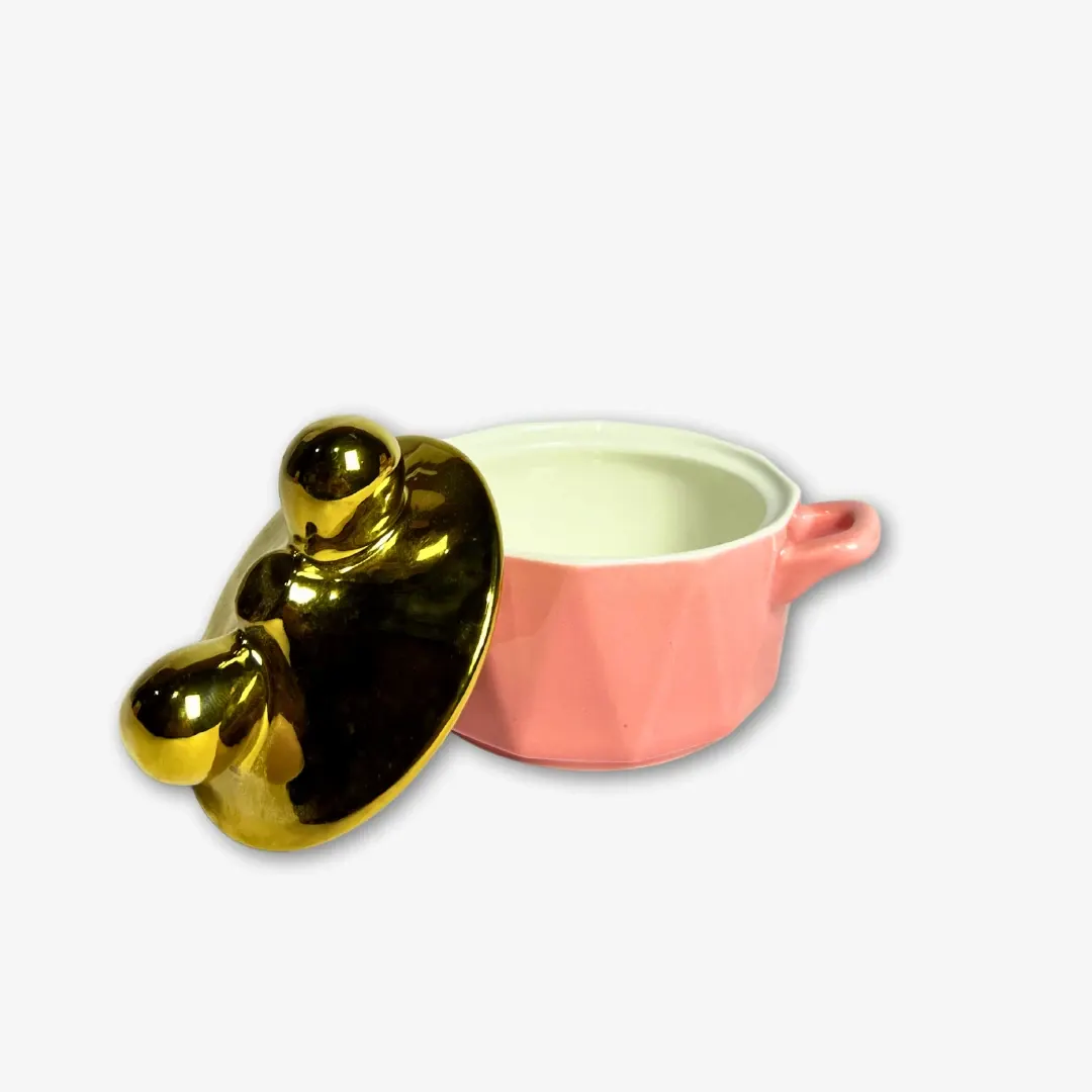 أضيفي لمسة من الرقي والأنوثة إلى مائدتك مع بولة الشوربة المصنوعة من بورسلين عالي الجودة، باللون الوردي الهادئ والمميز. يأتي الغطاء بتصميم “فيونكة” مدهبة تمنح البولة طابعًا فخمًا وراقيًا يناسب كل الأذواق.