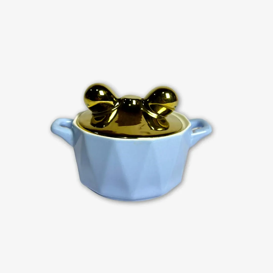 شوربة مصنوعة من بورسيلين عالي الجودة، مزودة بغطاء مدهب بشكل فيونكة مميز، مما