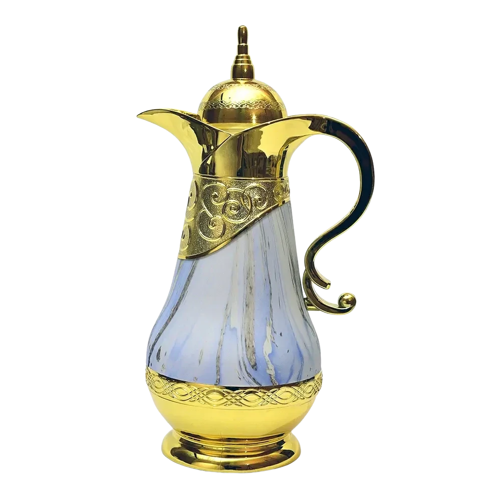 يتميز بتصميم فاخر باللون اللبني يضفي لمسة فنية جميلة على النيش أو طاولة الضيافة، ويجعل الترمس قطعة ديكور مميزة تضيف لمسة من الذوق الرفيع لأي ركن في البيت.