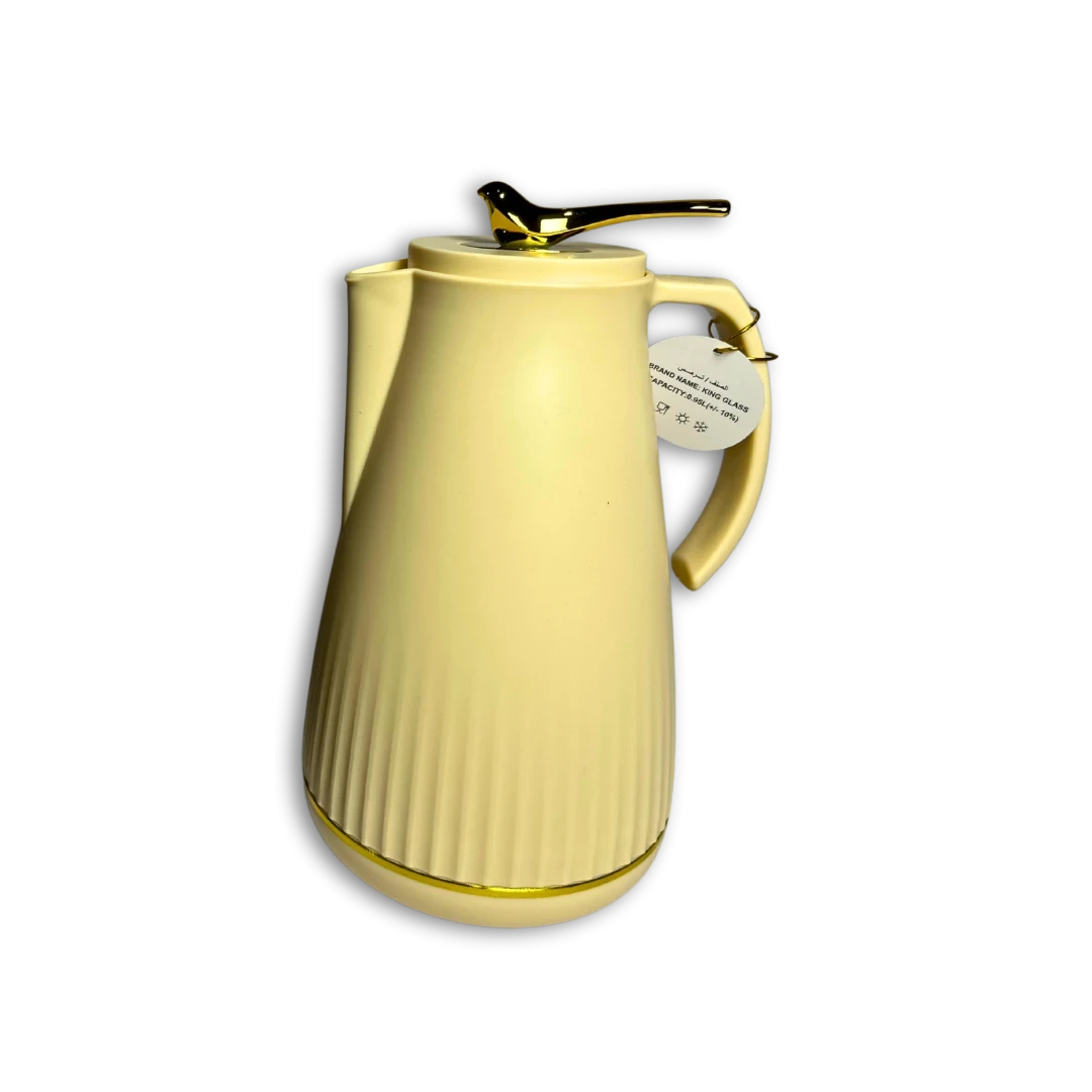 ترمس ديكوري أنيق ومميز لحفظ المياه الساخنة، مزود بغطاء على شكل عصفورة يضيف لمسة فنية جذابة لأي مكان، سواء في النيش أو على السفرة.