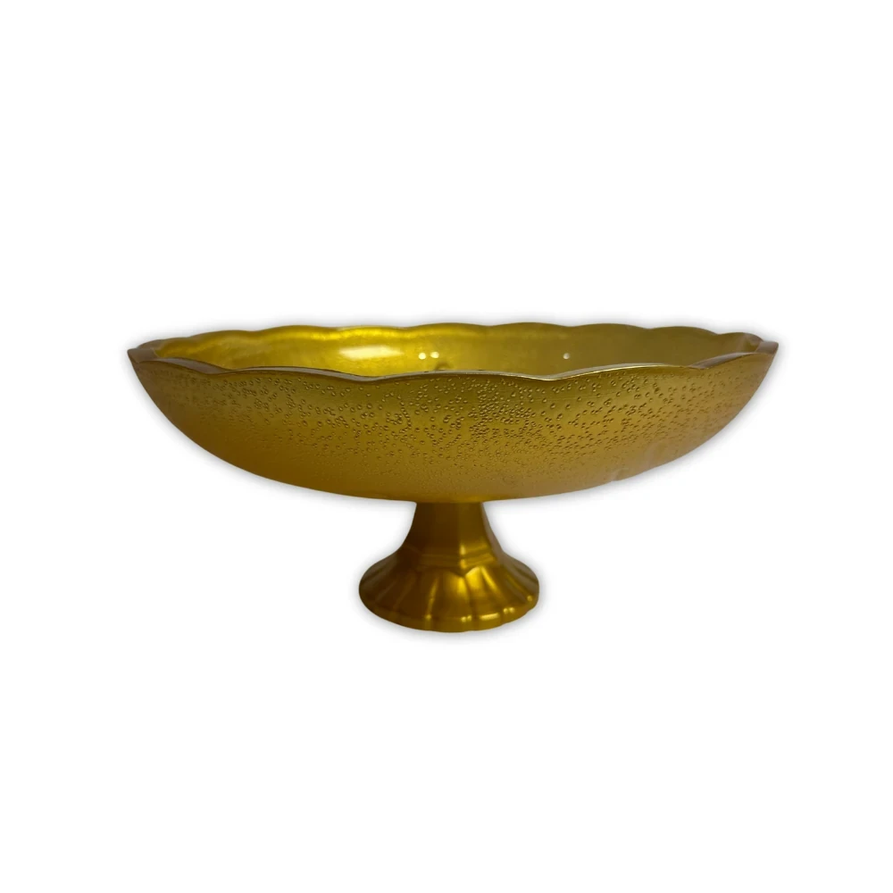 طبق فاكهة زجاجي فاخر بتصميم عصري أنيق، مطلي بلون ذهبي لامع يضفي لمسة من الفخامة والرقي على مائدتك، ويجعل التقديم أكثر تألقًا وجاذبية.