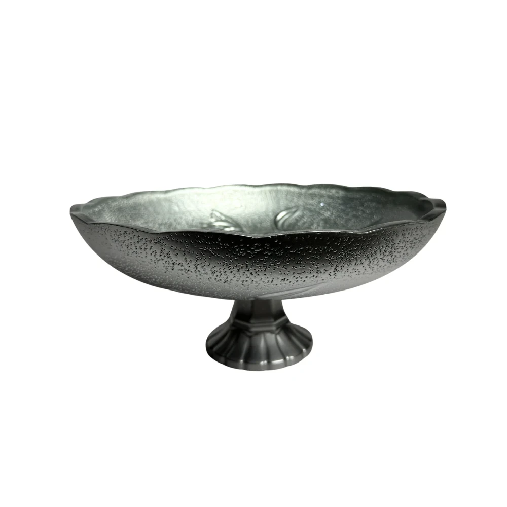 طبق فاكهة زجاجي فاخر بلمسة عصرية أنيقة، مطلي بلون فضي لامع يعكس الأناقة والرقي، ليكون قطعة مميزة تزين مائدتك في كل مناسبة.