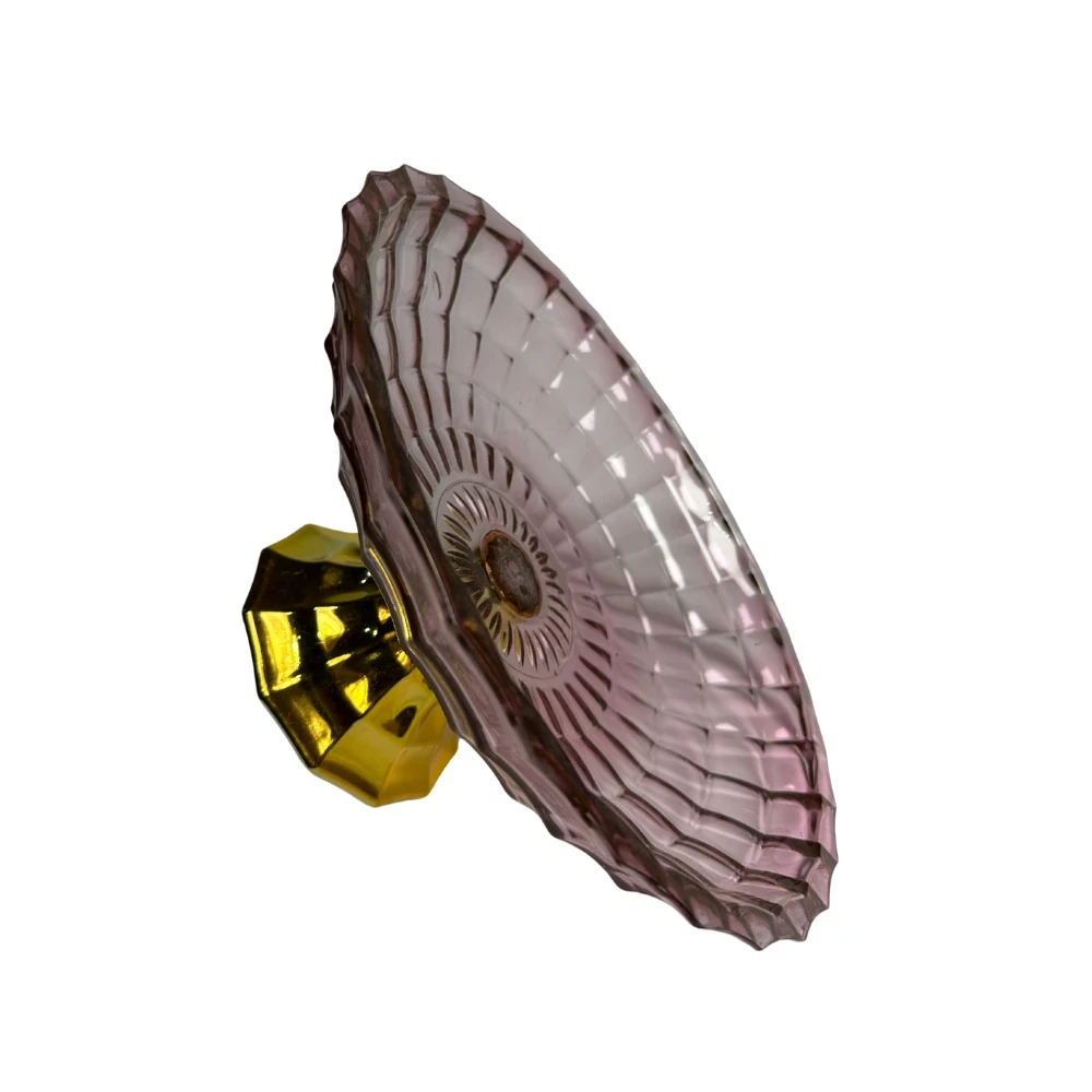 طبق فاكهة فاخر يجمع بين الأناقة والعصرية، مصنوع من الزجاج الروز الهادئ، ومزود بقاعدة ذهبية أنيقة تضيف لمسة فخامة ورفاهية على أي مائدة.
