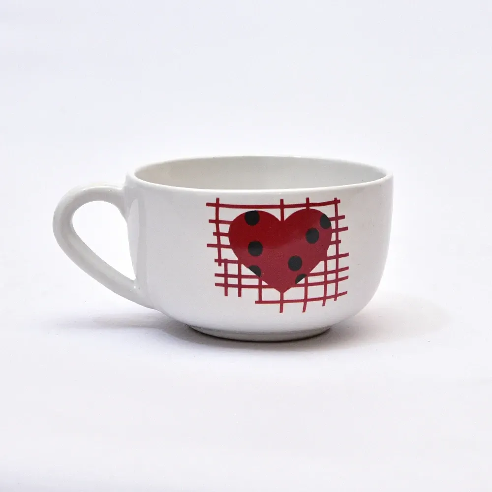 4 مجات شوربة بورسلين مزخرفة بنقشة قلوب أنيقة