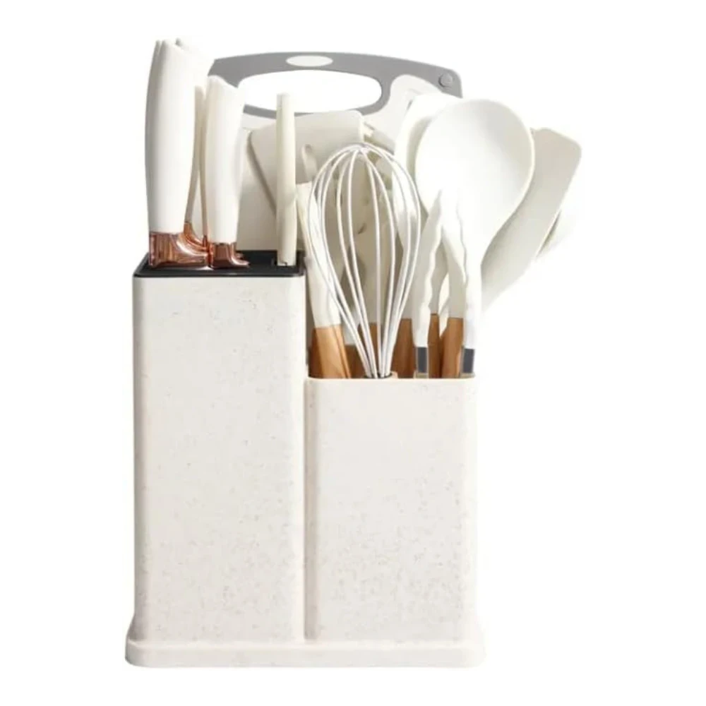 الطقم مصمم بشكل عملي لتلبية كل احتياجات المطبخ اليومية سواء في التحضير أو التقديم، مع تصميم أنيق يضيف لمسة ديكورية رائعة.