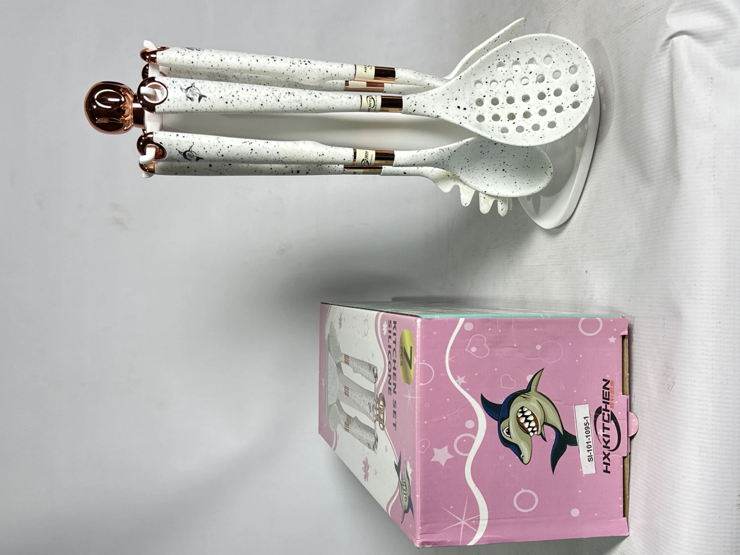 طقم التوزيع اللي هيخلي تقديم الطعام أسهل وأجمل! الطقم ده بيشمل كبشة، مغرفة، ملعقة كبيرة، وكلهم جايين في حامل مميز عليه كورة من فوق، مصنوع من سيليكون عالي الجودة عشان تضمني أداء ممتاز مع كل استخدام. التصميم العصري والعملي هيخلي توزيع الأكل أسهل وأسرع، وكمان هيضيف لمسة فخمة لمطبخك. السيليكون المتين هيوفر لكِ استخدام طويل الأمد. مع الطقم ده، هتقدمي الأكل بكل أناقة وترتيب في أي وقت!ماده التصنيع -سيليكون