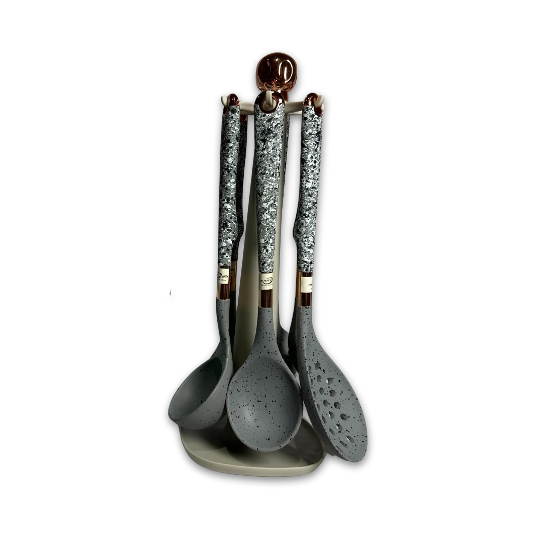 طقم التوزيع اللي هيخلي تقديم الطعام أسهل وأجمل! الطقم ده بيشمل كبشة، مغرفة، ملعقة كبيرة، وكلهم جايين في حامل مميز عليه كورة من فوق، مصنوع من سيليكون عالي الجودة عشان تضمني أداء ممتاز مع كل استخدام. التصميم العصري والعملي هيخلي توزيع الأكل أسهل وأسرع، وكمان هيضيف لمسة فخمة لمطبخك. السيليكون المتين هيوفر لكِ استخدام طويل الأمد. مع الطقم ده، هتقدمي الأكل بكل أناقة وترتيب في أي وقت!ماده التصنيع -سيليكون