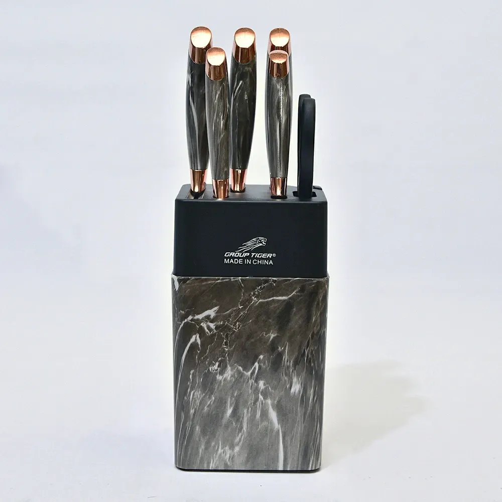 استمتعي بأداء ممتاز وشكل أنيق مع طقم السكاكين الرخامي اللي بيوفرلك كل اللي تحتاجيه في المطبخ بسهولة وأناقة.