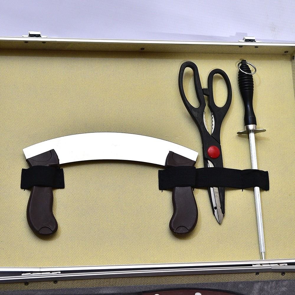 طقم سكاكين فاخر مكون من 25 قطعة بأشكال ومقاسات متنوعة، كل سكينة بتلبي احتياجك في المطبخ بكل دقة وسهولة! الطقم ده مش بس عملي، لكن كمان بيجي في شنطة أنيقة مصممة على شكل خشب إبانوس ، اللي هيضيف لمسة فخمة للنيش. مع الطقم ده هتستمتعي بكل لحظة في المطبخ، سواء للتقطيع أو التحضير، وكمان هيكون إضافة راقية لزينة المطبخ أو النيش. خلي أدواتك المنزلية مميزة وأنيقة مع هذا الطقم اللي بيجمع بين الفخامة والعملية في تصميم واحد!ماده تصنيع-استنلس