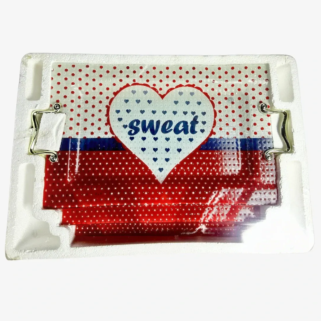 طقم صواني أنيق مكون من 3 قطع بأحجام مختلفة، مصنوع من زجاج أركوبيركس عالي الجودة، ومزين برسومات قلب باللون الأحمر تضيف لمسة من الحب والرقي على تقديمك للطعام.