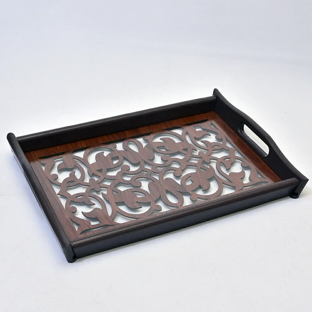 طقم صينية تقديم 2 قطعة خشب وزجاج – أرابسك
