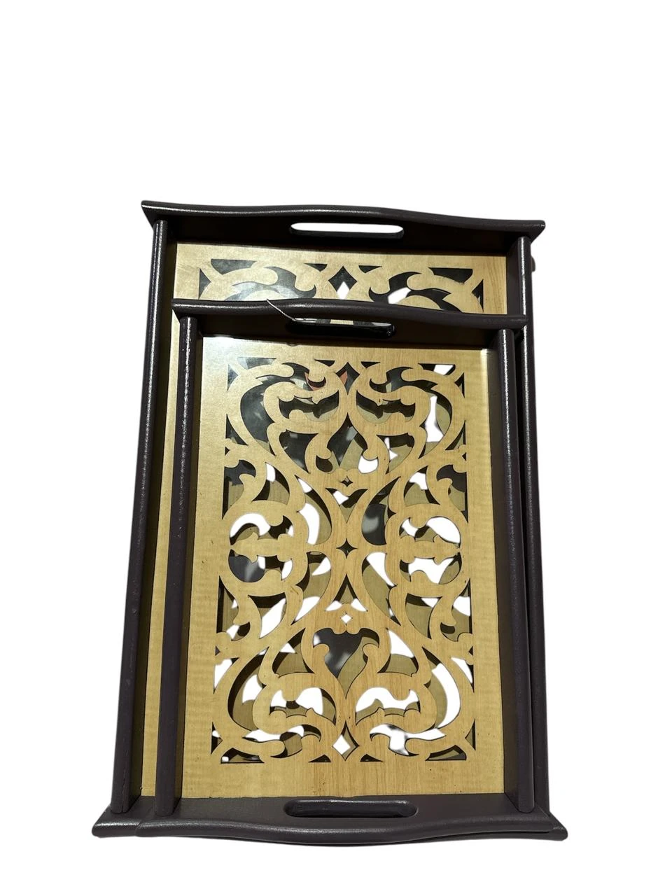 طقم صينيه تقديم 2 قطعة خشب و زجاج ارابسك-مزخرفه