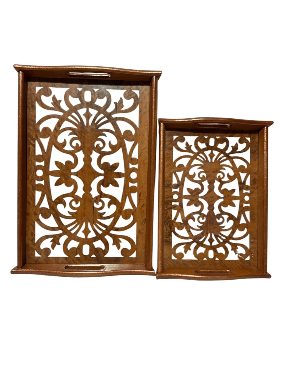 طقم صينيه تقديم 2 قطعة خشب و زجاج ارابسك