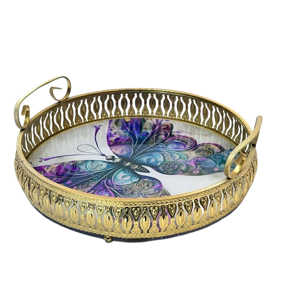 طقم صينيه 2قطعة مدور معدن – زجاج فراشة