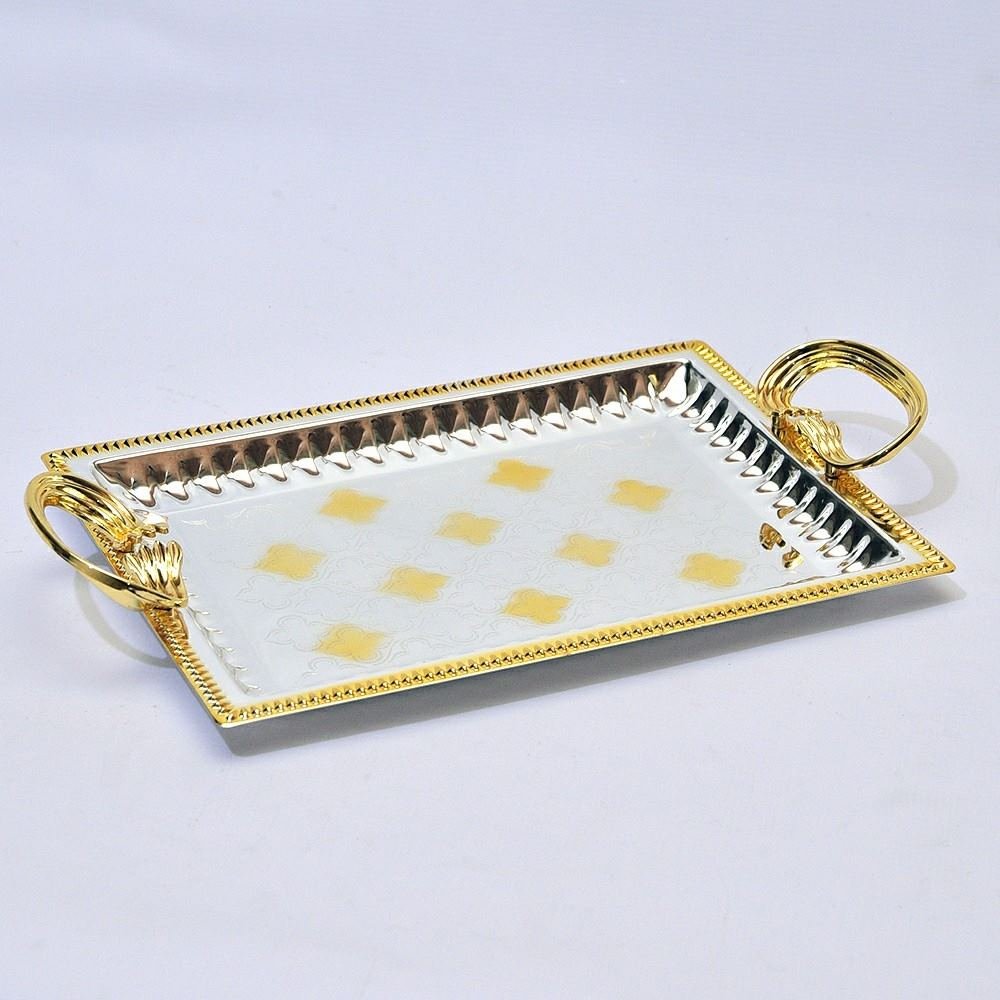 طقم صينيه 2 قطعة صينية سلفر – ذهبي مضلع