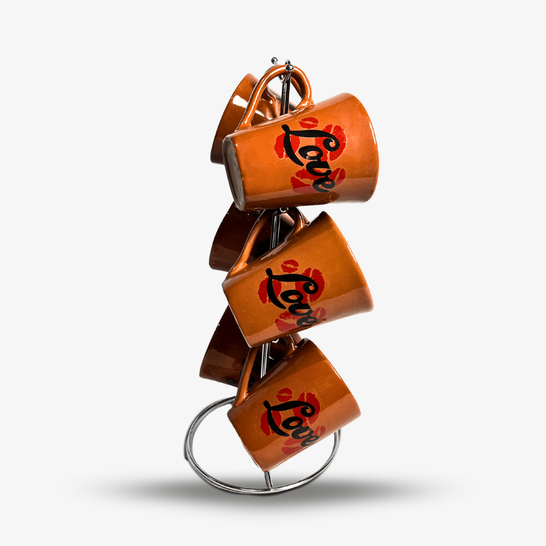 طقم مج كافية بورسلين كلاسيك – 6 قطع بالحامل (أورانج غامق)