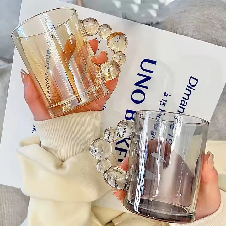 طقم مجات زجاجي عسلي – لمسة فريدة من الأناقةطقم مكون من 6 مجات زجاجية باللون العسلي، يتميز بيد بتصميم بابلز مبتكر يضفي لمسة من التميز والعصرية.