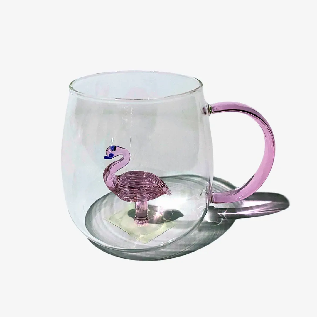 استمتعي بمشروبك المفضل بشكل مختلف مع المج الزجاجي الشفاف اللي بيحتوي على مجسم بجعة بارز من الداخل. تصميم أنيق ومميز هيخلي كل رشفة تجربة فنية فريدة.