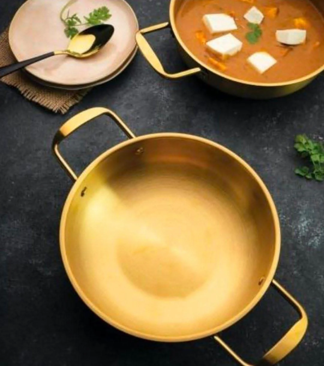 مقلاة ذهبية من الألومنيوم بتصميم فاخر وعصريمقلاة ذهبية اللون مصنوعة من الألومنيوم عالي الجودة، مما يضمن توزيعًا متساويًا للحرارة للحصول على نتائج طهي مثالية. تتميز بتصميم أنيق وعصري، مع يدين متينتين لسهولة الحمل والتحكم أثناء الطهي.