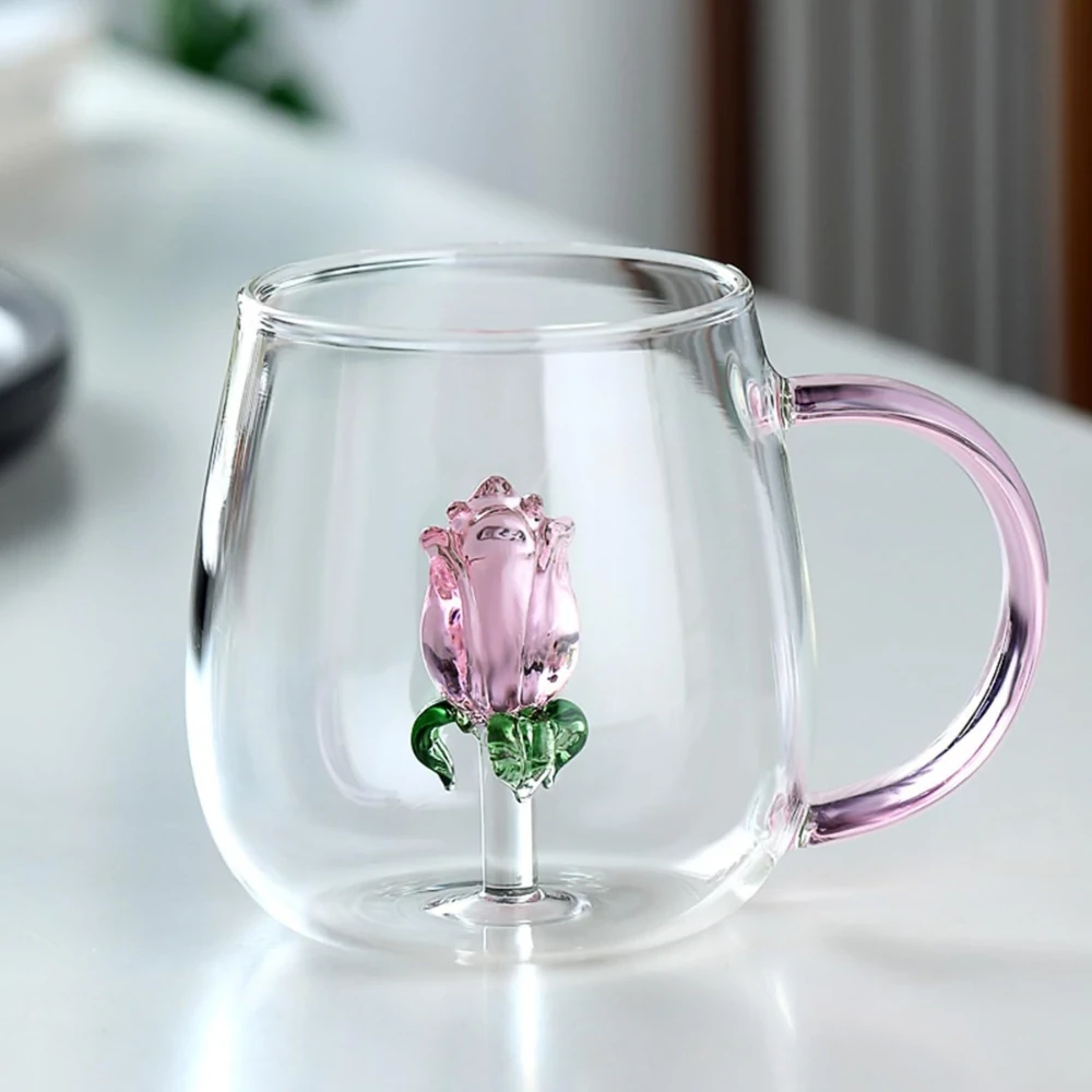 مج زجاجي شفاف بتصميم مجسم وردة مج زجاجي شفاف بتصميم فريد وأنيق يحتوي على مجسم وردة داخل الكوب، مما يضفي لمسة فنية وجمالية مميزة على مشروبك. يجمع هذا المج بين الأناقة والتفرد، ليكون خيارًا مثاليًا لتقديم المشروبات بطريقة مميزة واستثنائية.